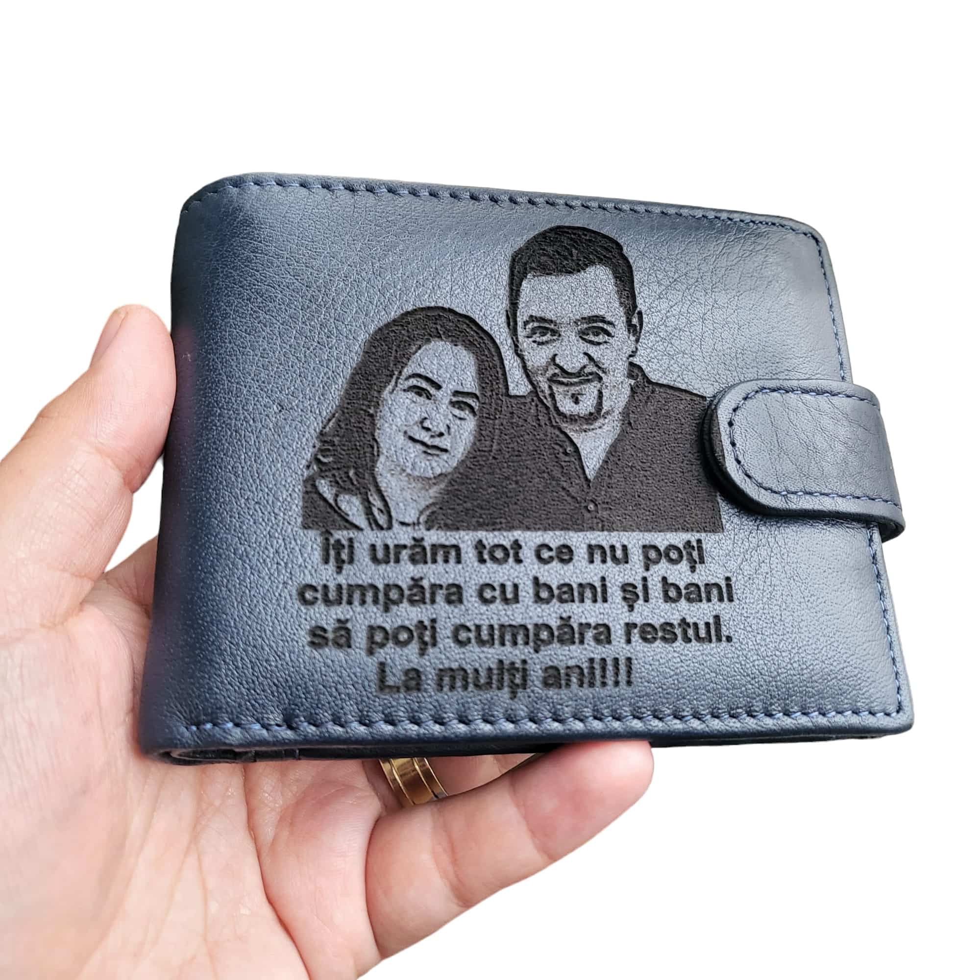 Portofel Albastru Cu Capsa Piele Naturala Iti Uram La Multi Ani