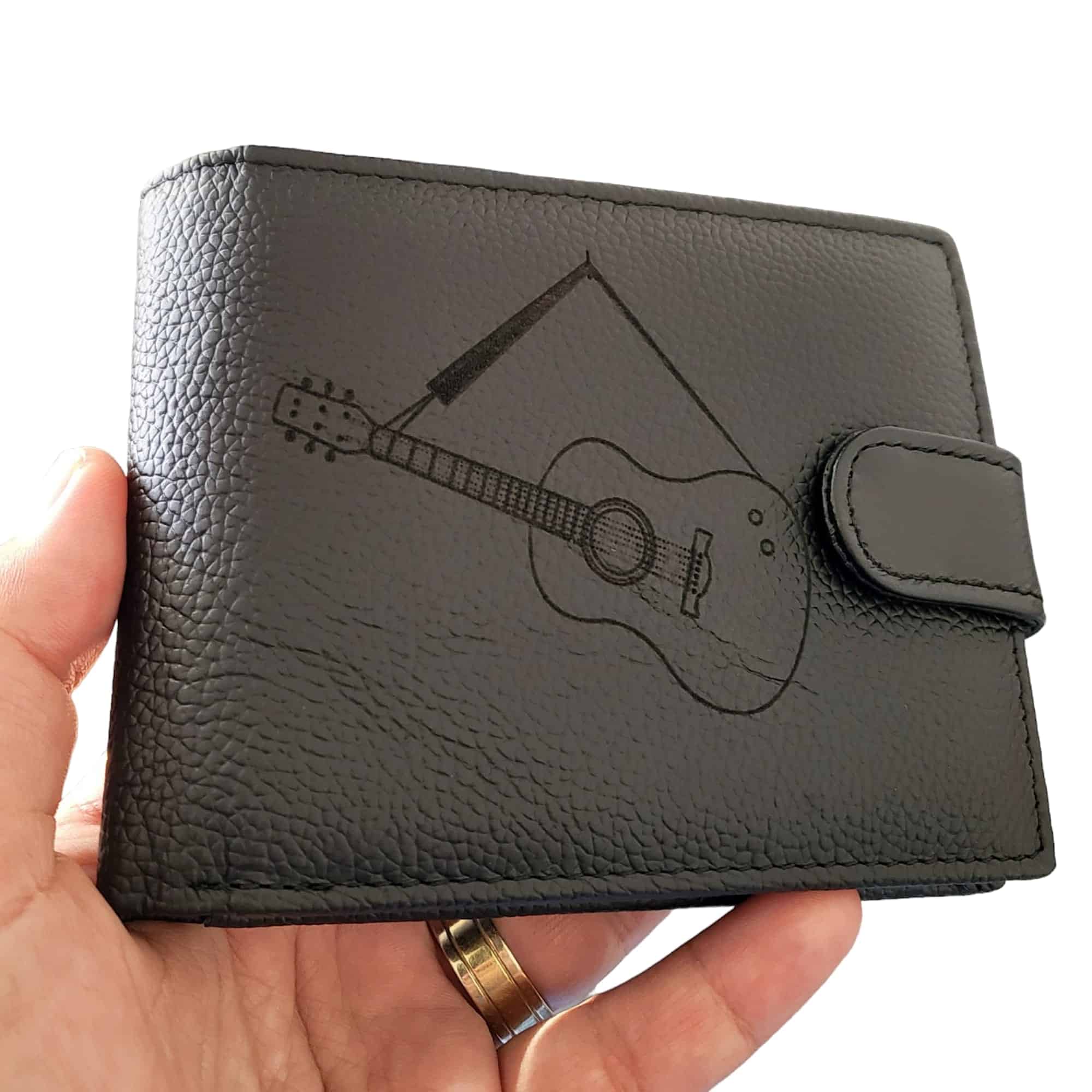 Portofel Negru Cu Capsa Piele Naturala Personalizat Cu Chitara