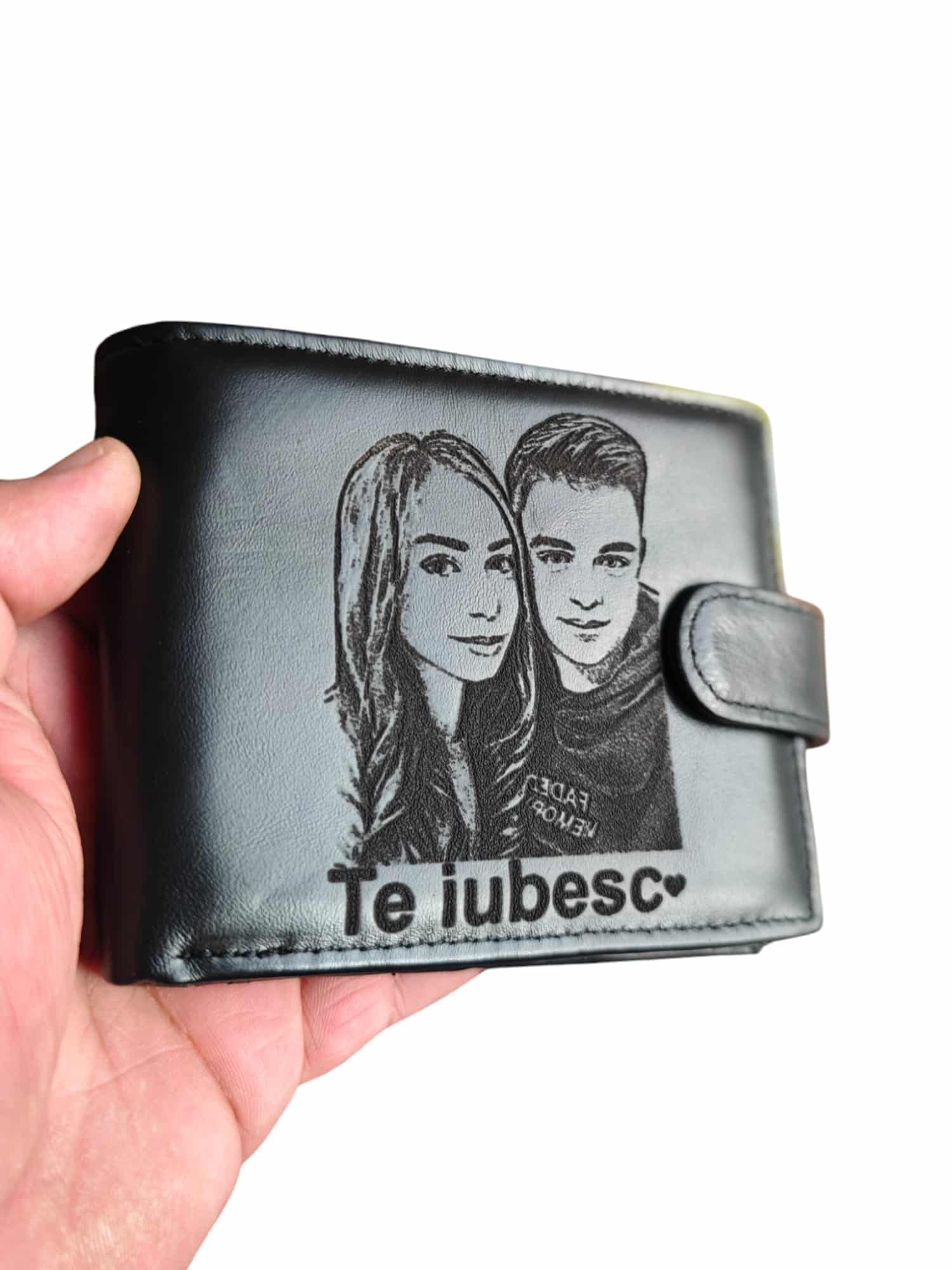Portofel Negru Cu Capsa Piele Naturala Te Iubesc!!!