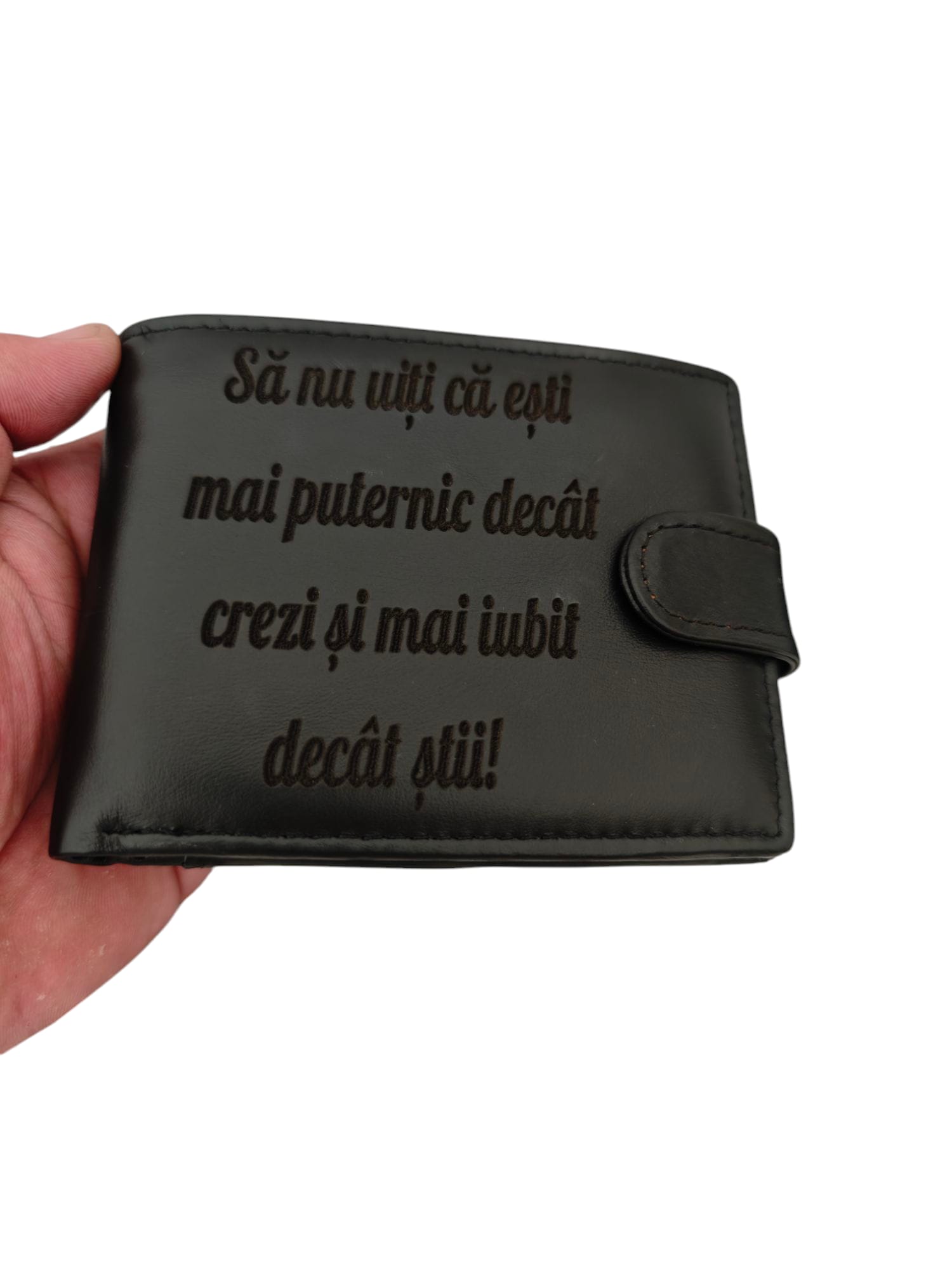 Portofel Personalizat Cu Text Negru Cu Capsa Decat Crezi