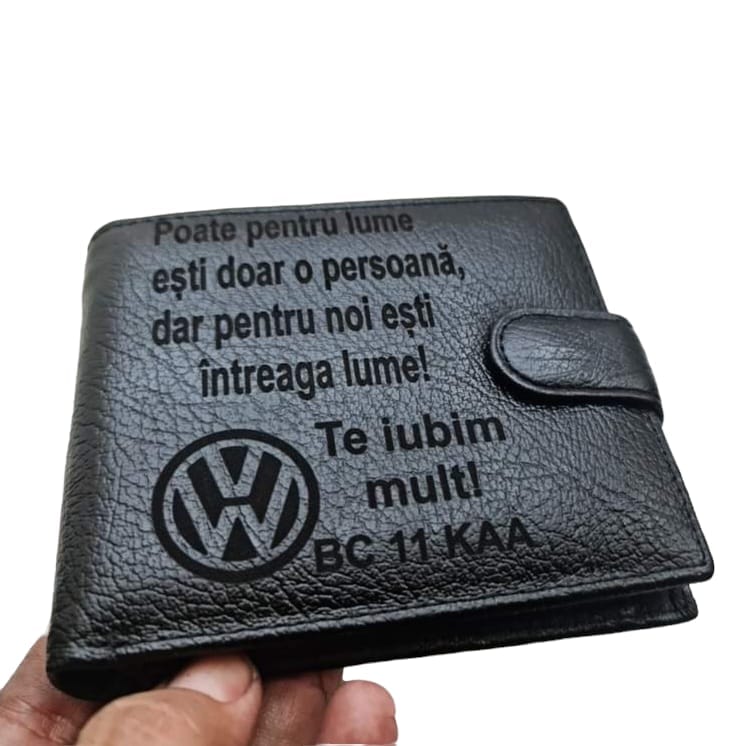 Portofel Personalizat ‘Poate pentru lume’, barbati, piele naturala , negru