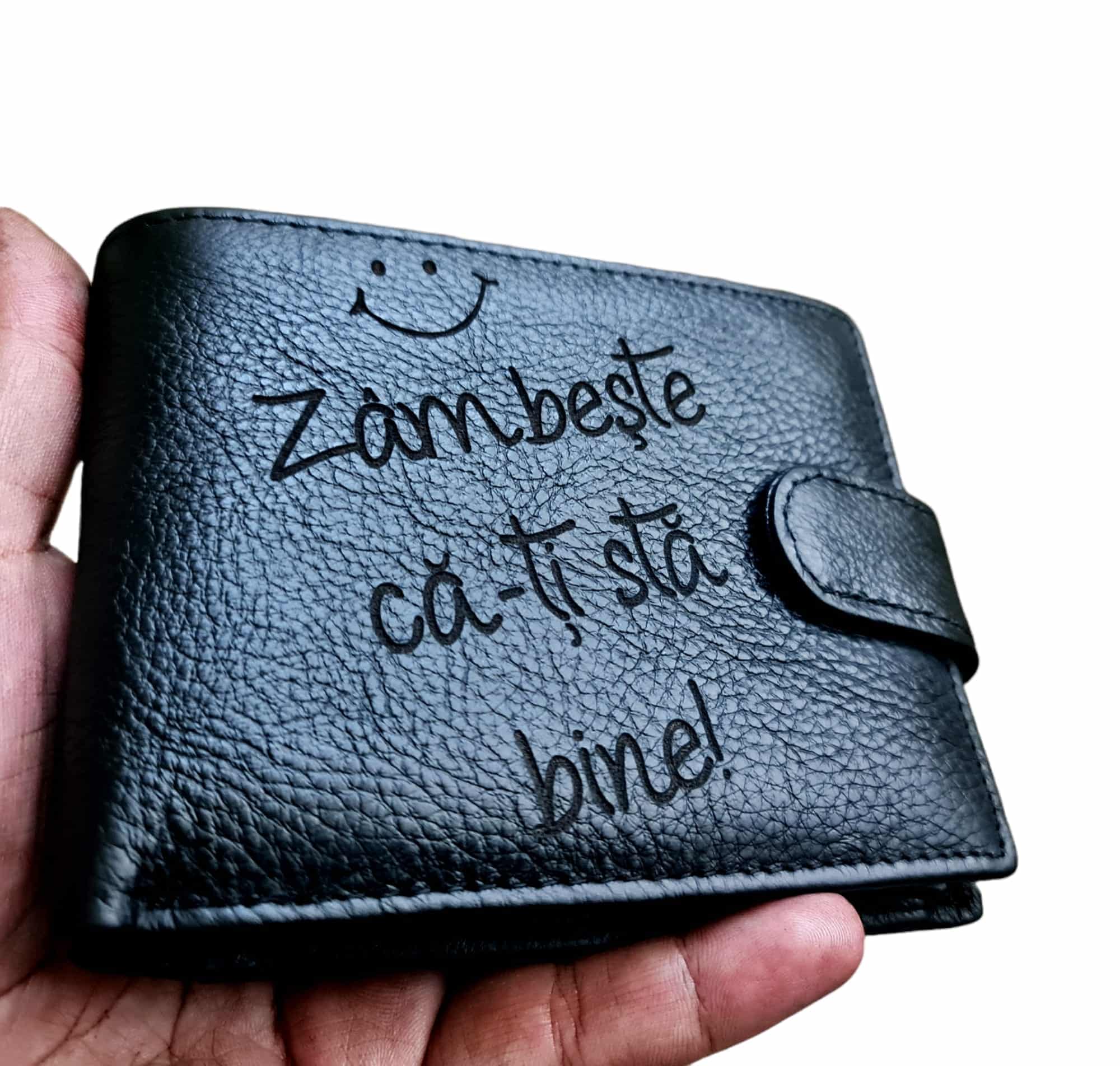 Portofel Personalizat ‘Zambeste ca-ti sta bine’, barbati, piele naturala, negru