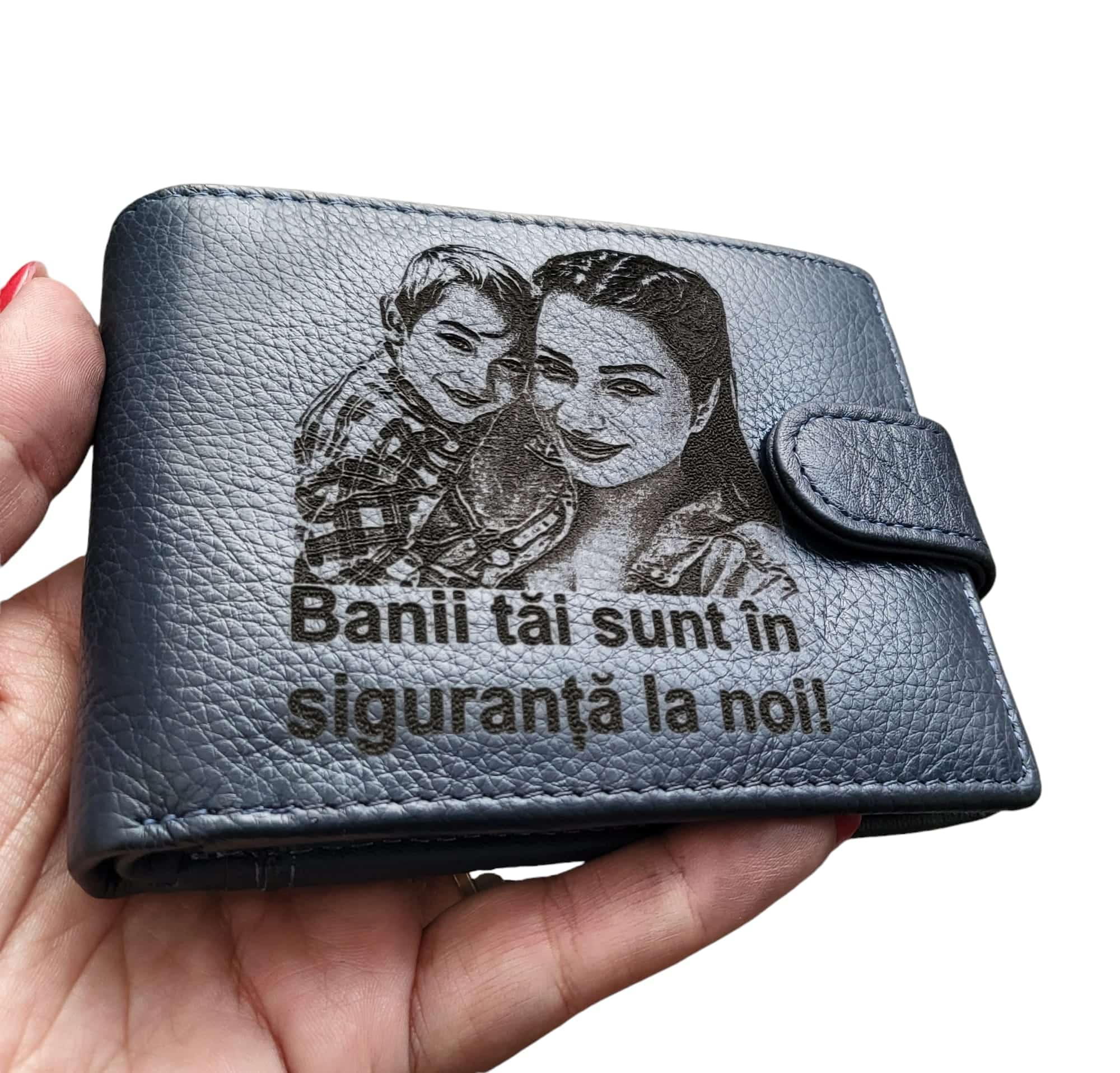 Portofel Piele Naturala Albastru Cu Capsa Banii Tai.